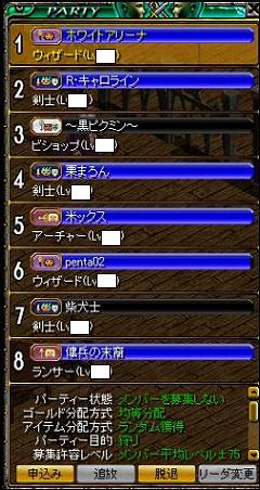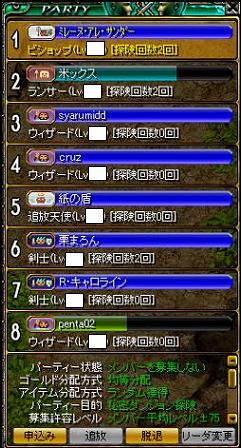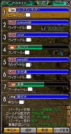 姫×2、BIS×1、剣士×3?、WIZ×1、あと1名?みたいな布陣で8人対8人の対戦でしたが