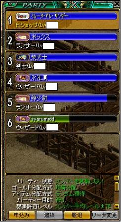 シフ、WIZ、BIS、犬、弓?、テイマ、??足止めいたのかな。