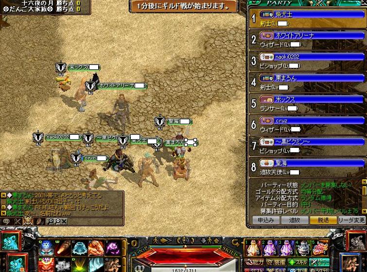 相手様:テイマ×1、シフ武道×2、アーチャ×1、BIS×1、ディスペ天使×1、剣士×1っぽぃ