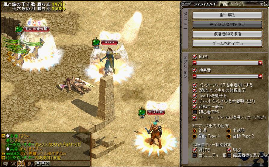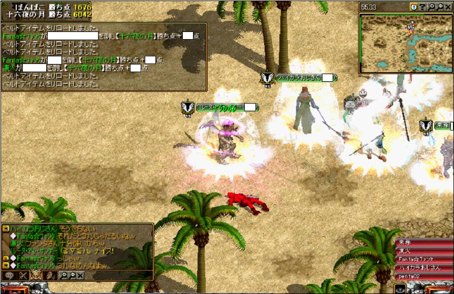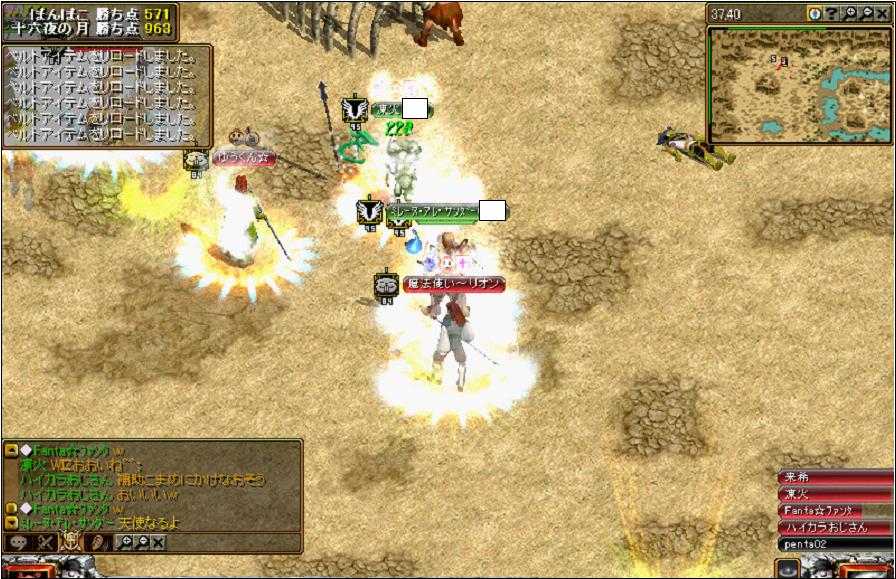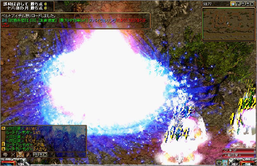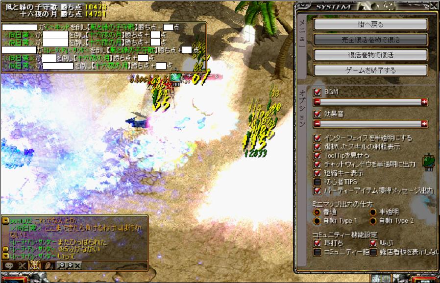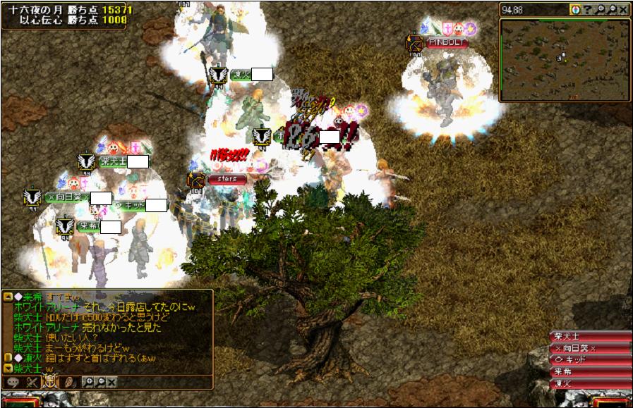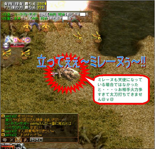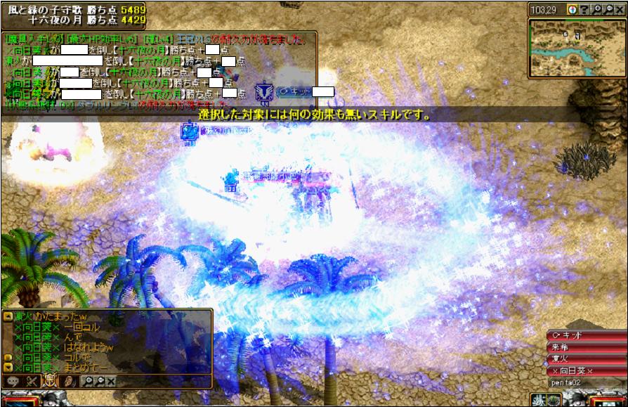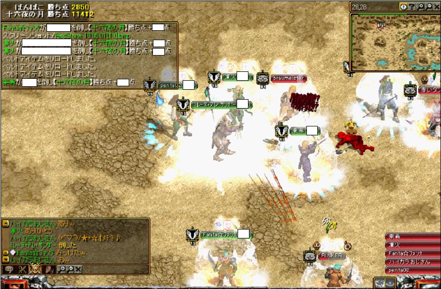 550台?WIZ、640台剣士、610台弓、霊術師の方はいませんでしたが火力Lvだけならすごぃ強くなってて交渉の時点で少し弱気になっていたホワイトです。ただBISさんの姿が対戦中見えなく、ふと相手の方が全員消えるとぃうことでコルBISがどこかに潜んでいた様子でしたね。開始早々まさかのpenta02さんはPC再起動でギルド戦開始して15分経ってやっと戻ってきましたぁ~おそっ^^;;半分終わってるとぃぅ・・・。序盤は相手の
