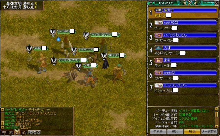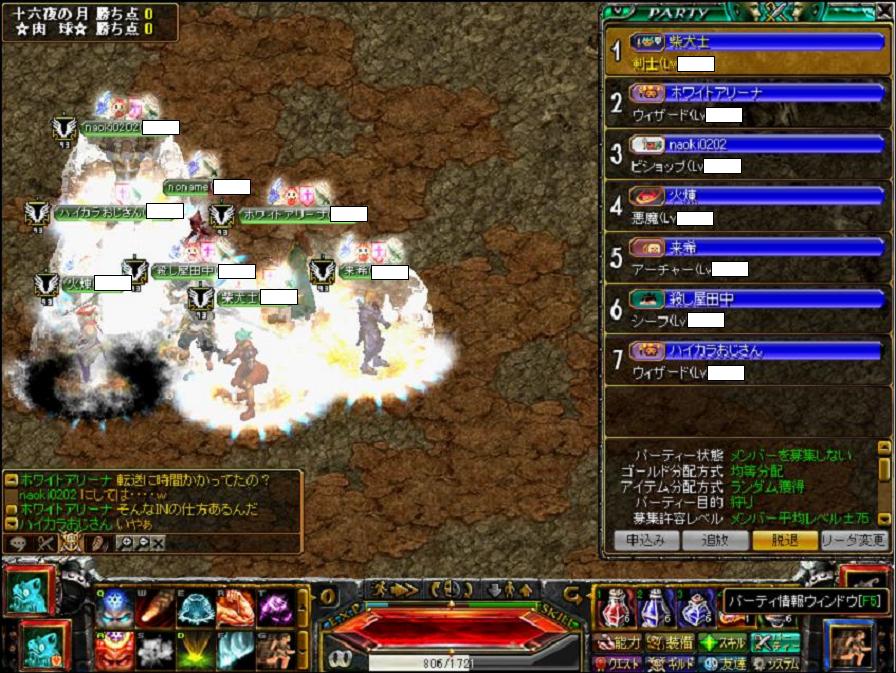 MAPの申し込み画面で過去に何度か名前だけはかねがね見て気になっていたギルド様をついに発見!平均460Lv、トップ火力には650台と620台にアーチャー様、510台にWIZさんとうちとひけをとらなぃ高Lvです。ただうちの土曜日と同様、参加人数が1PTに満たない少数精鋭ということでメンバー参加率に同じ悩みを抱えている様子。午前中にはMAP申し込みを行ないましたが、さすが土曜日!22時台のMAPはがら空きです><みんな攻城戦に力入れすぎでしょ@w@