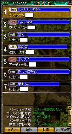 トップ火力560Lv剣士さんが中心。その他400台武道さん、300台WIZさん、200台BIS